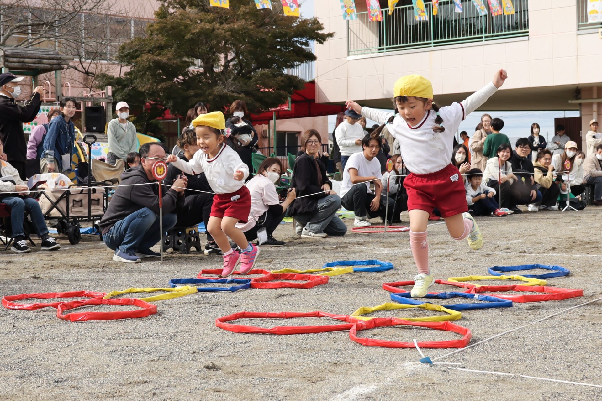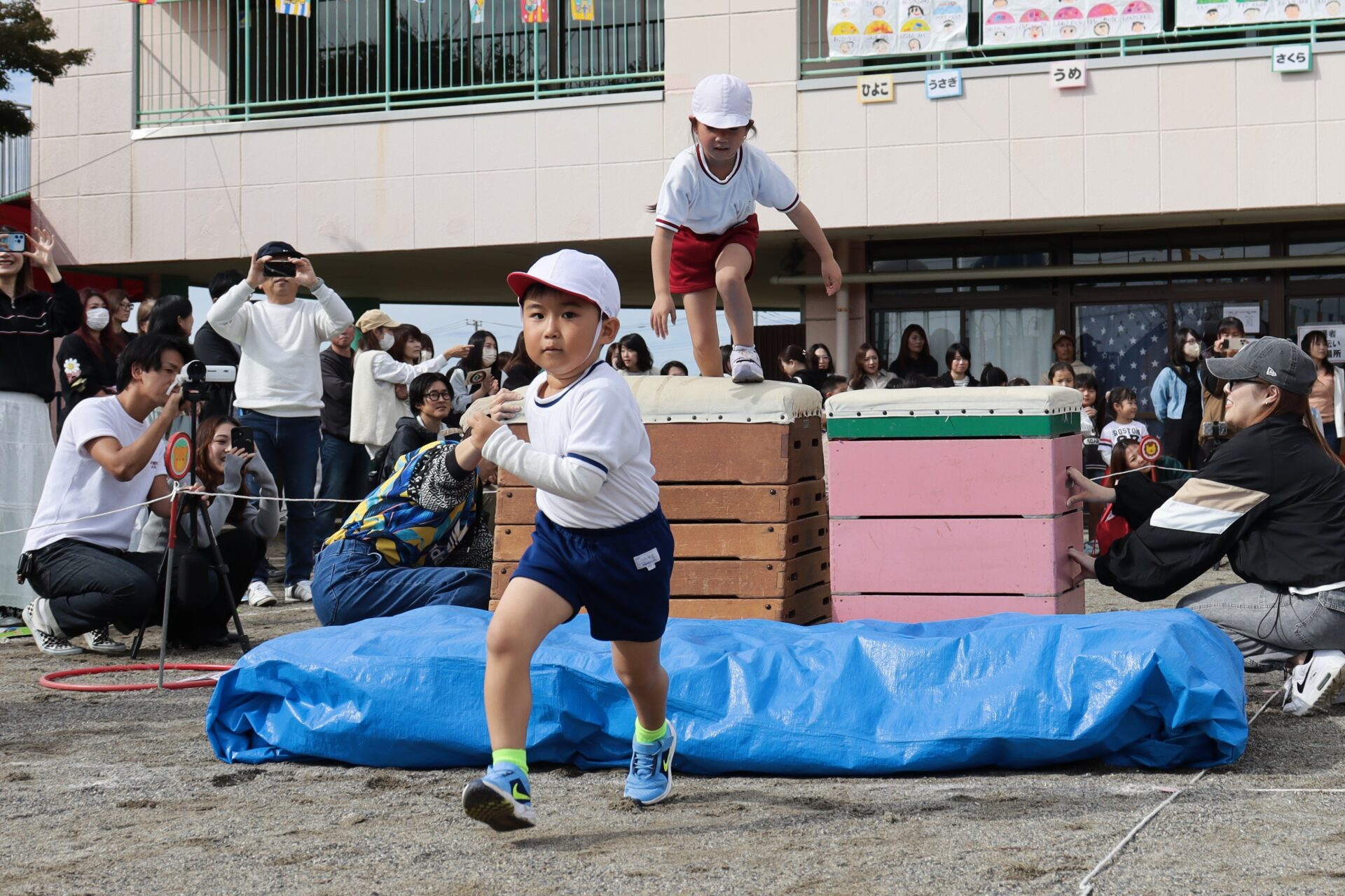 年長組の個人走。障害物を4つクリアしてゴールです。