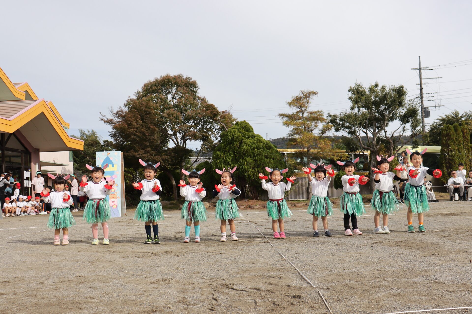 年少組のお遊戯。スティッチとエンジェルに変身!