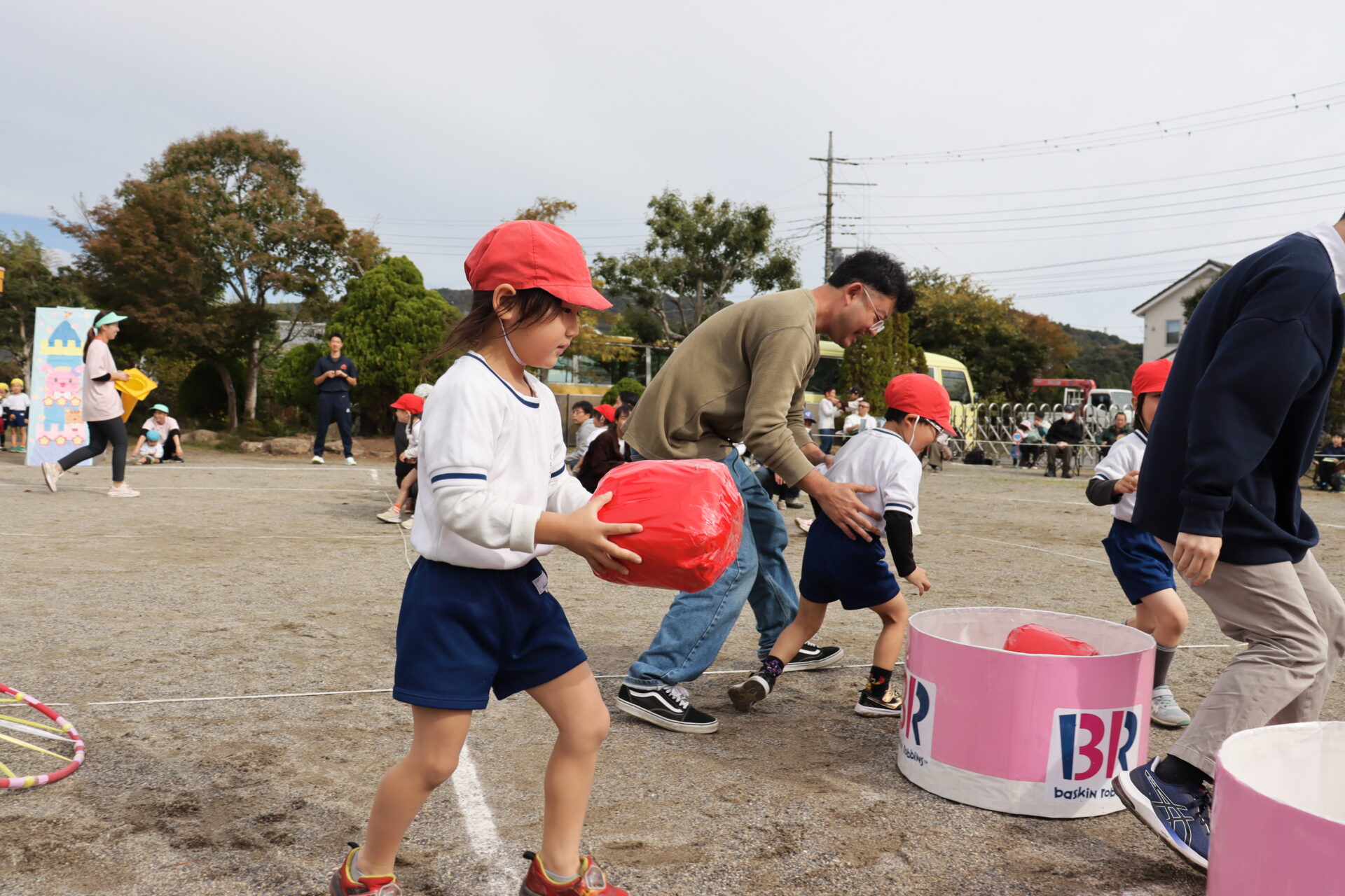 年中組の親子競技。 アイスクリームを運びます。