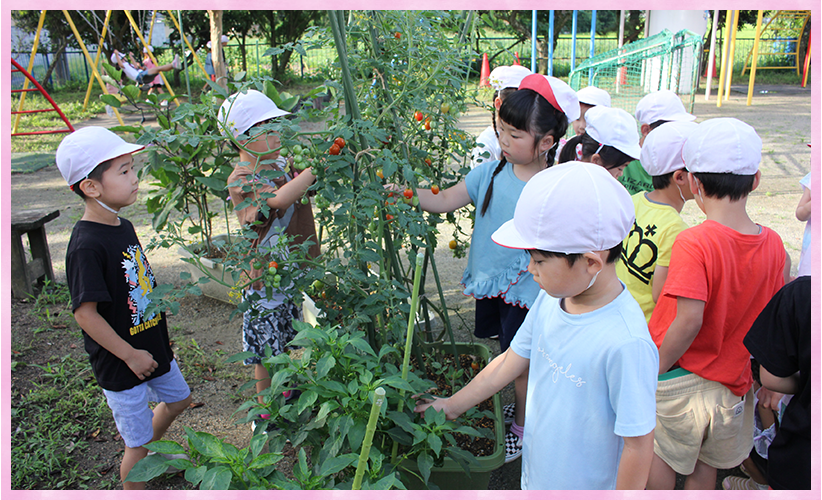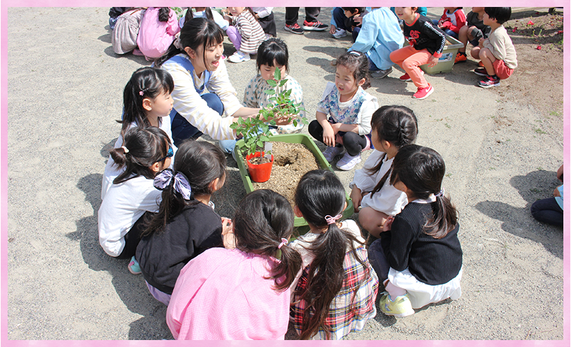 園児の五感(視覚、聴覚、味覚、嗅覚、触覚)を使って物事に取り組むことが大事です。