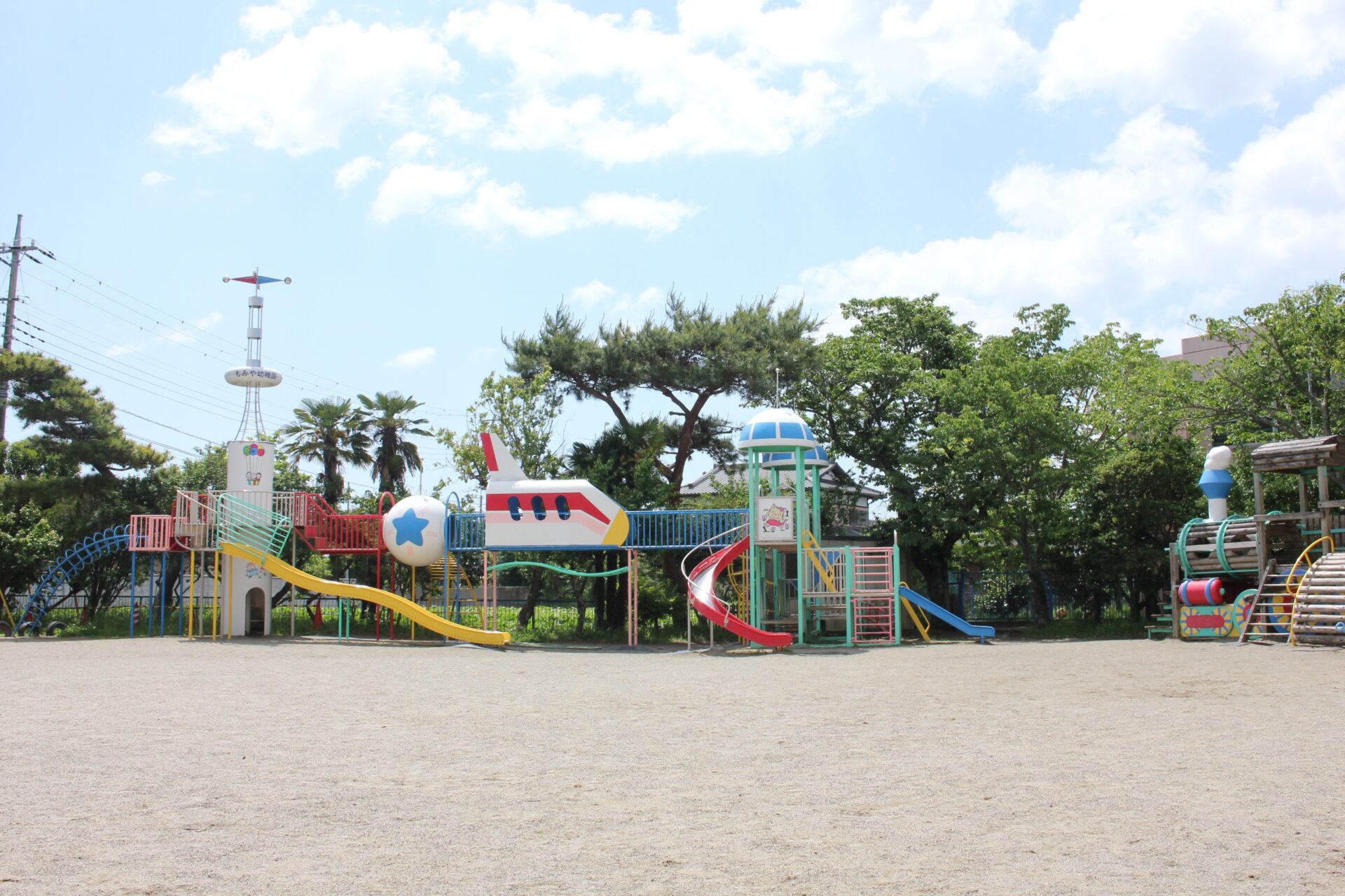 スペースランド・汽車などの大型遊具や鉄棒・ブランコ・回転遊具など充実