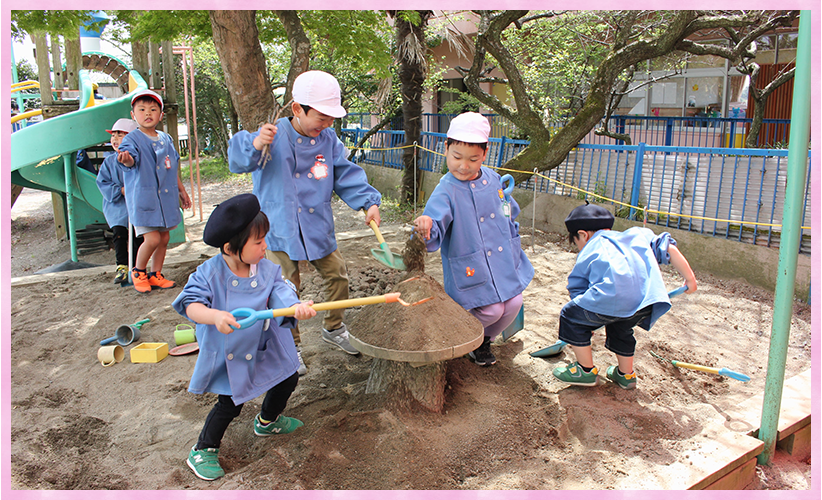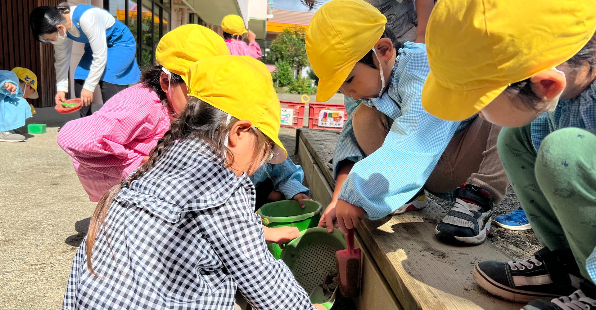 園児の五感(視覚、聴覚、味覚、嗅覚、触覚)を使って物事に取り組むことが大事です。