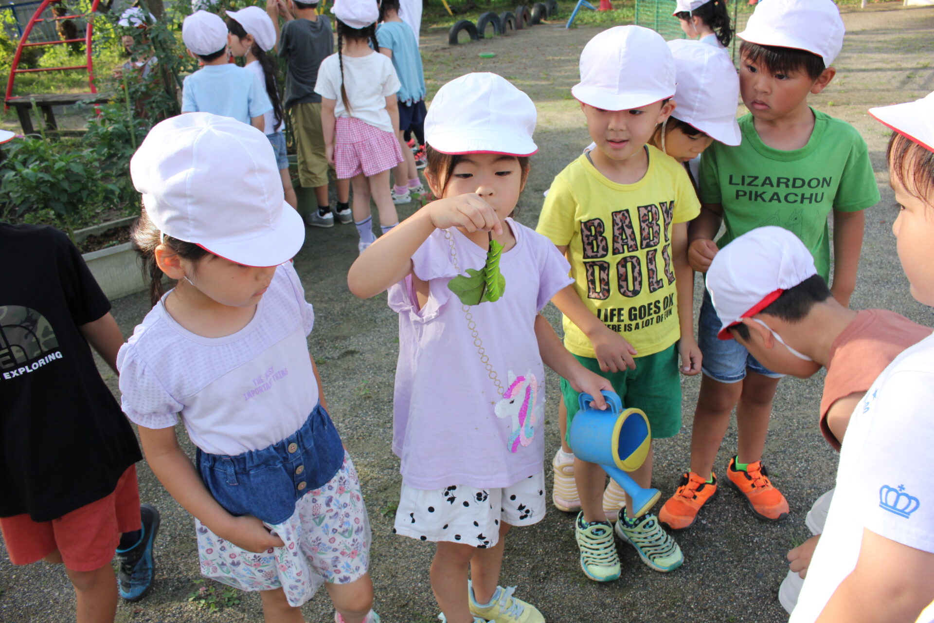 食育として年長児が野菜の栽培をします。毎日交代で水やりをし、大切に育てます。